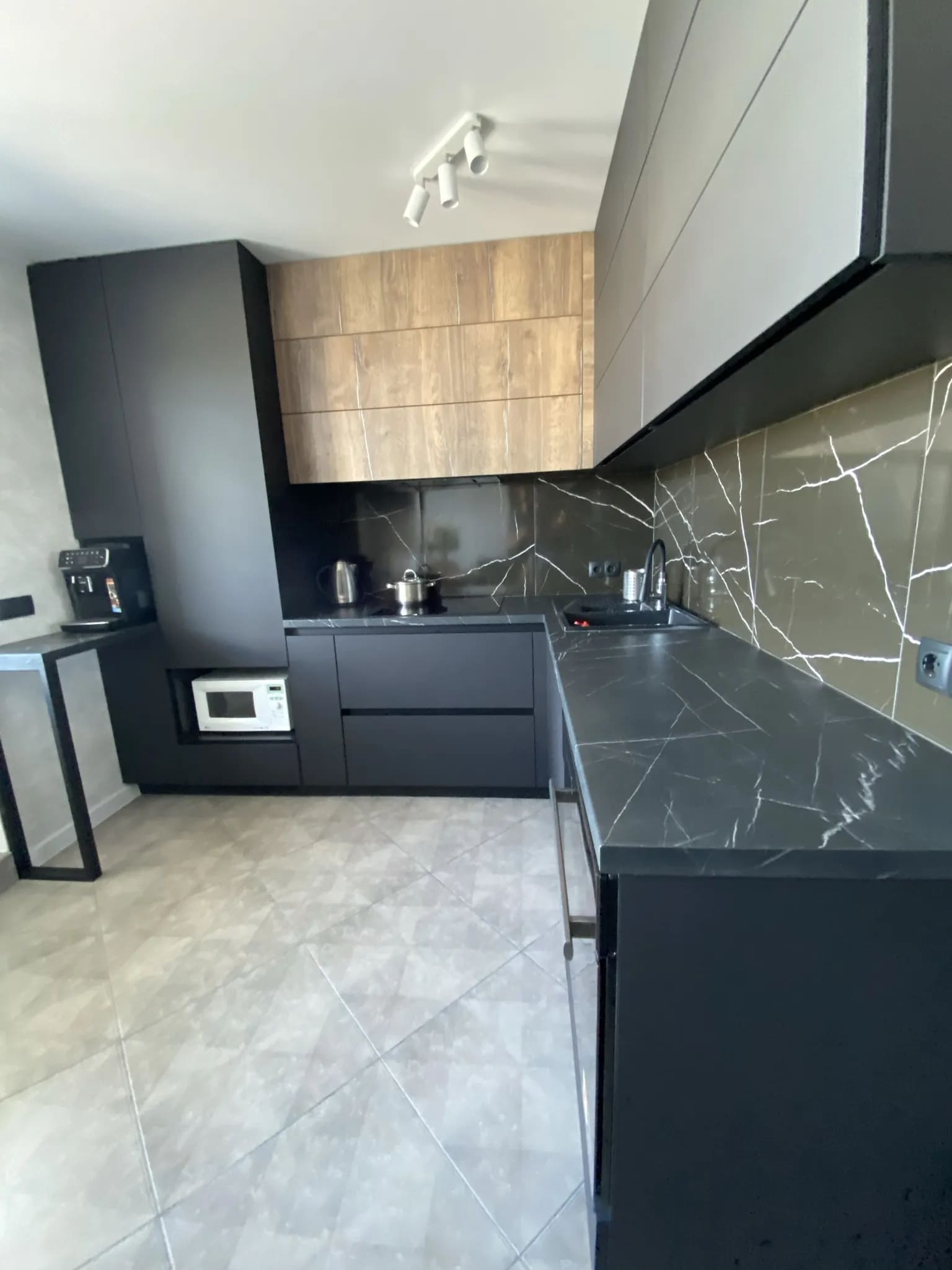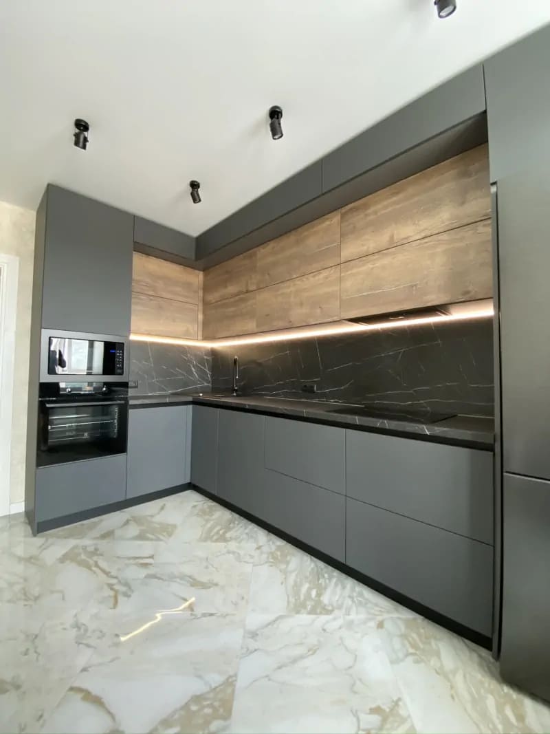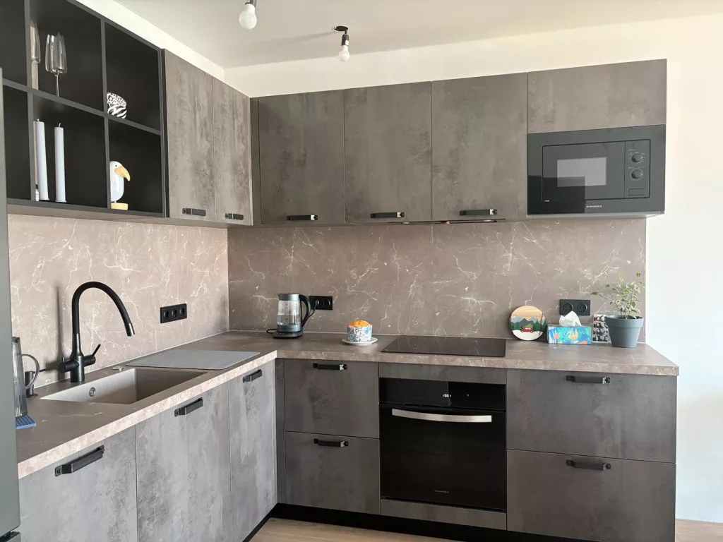 В прихожую присмотрели бежевый шкаф купе, потому что хотелось спокойный и универсальный цвет. Оттенок оказался очень приятным и хорошо сочетается с интерьером. Шкаф сделали по нашим размерам, поэтому он идеально занял место у стены. Внутри всё продумано: есть штанга для одежды, полки и несколько удобных ящиков. Двери двигаются плавно и тихо. Шкаф получился вместительным, аккуратным и отлично дополнил интерьер коридора.